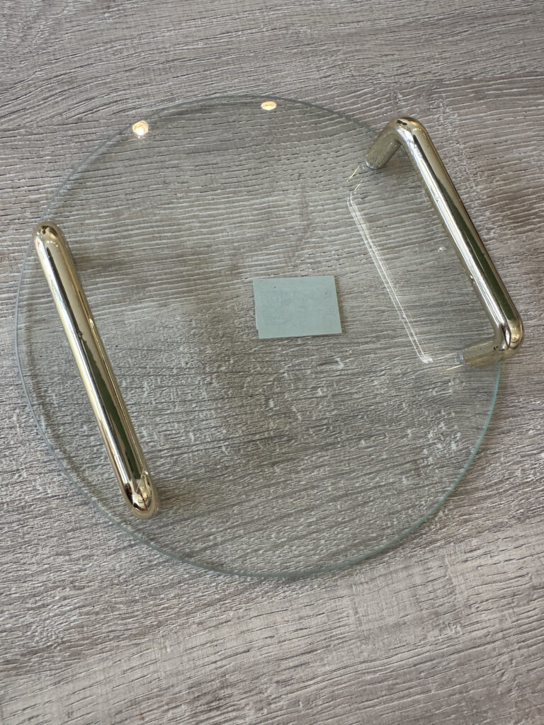 BANDEJA VIDRIO REDONDA CON MANIJAS DORADAS