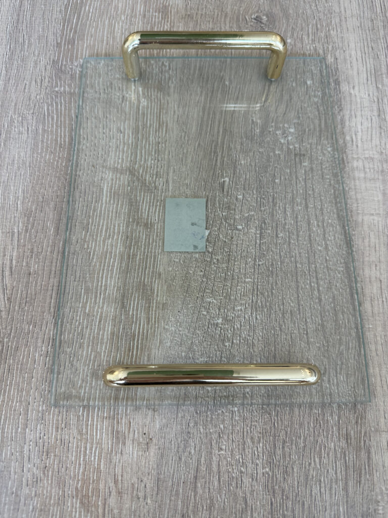 BANDEJA VIDRIO RECTANGULAR CON MANIJAS DORADAS